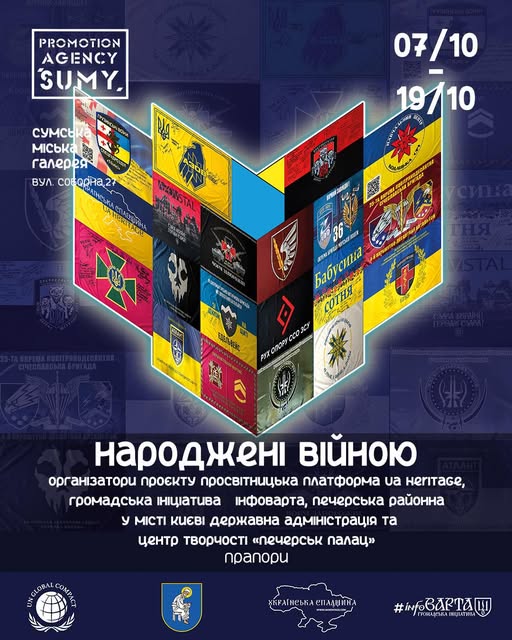 Організатори проєкту: просвітницька платформа UA Heritage, громадська ініціатива ІнфоВАРТА, Печерська районна у місті Києві державна адміністрація та Центр творчості «Печерськ Палац», представляє легендарні прапори у Сумах – місті, яке по праву отримало відзнаку «Місто-Герой». Саме тому виставка прапорів особливо символічна. Чимало представлених підрозділів беруть участь у захисті й визволенні Сумщини від російських окупантів.