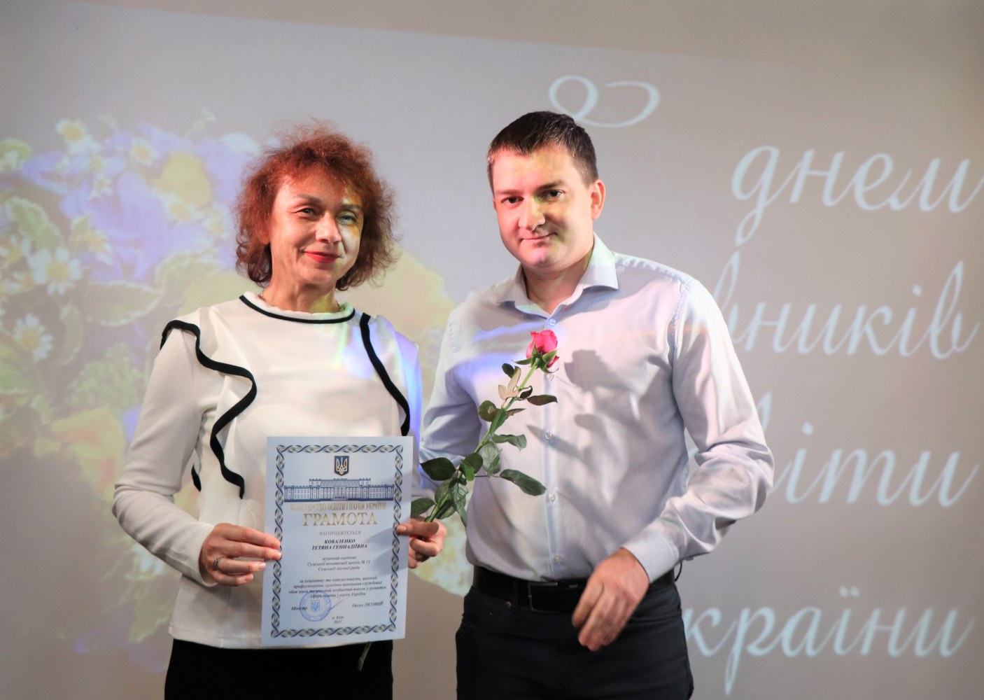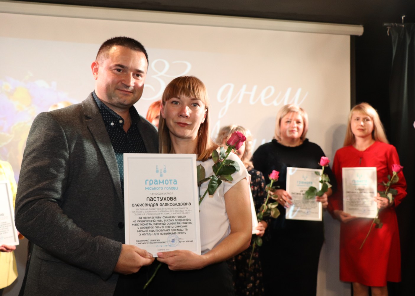 Заступник міського голови Римма БИКОВА звернулася до освітян із найщирішими словами вдячності та наголосила на особистій вагомій ролі педагогів у житті дітей, особливо в умовах сьогодення: «Ви – приклад стійкості для дітей та їхніх батьків. І саме завдяки вам наші діти зростають сильними та готовими свідомо будувати нове майбутнє. Дякую кожному з вас за відданість, любов до дітей і незламність, а також за те, що є стрижнем і силою, яка допомагає не лише юним сум’янам справлятися з тривогою та страхами, а й їхнім родинам. Пам’ятайте, що ваші знання та серця - це те, що тримає Україну сильною сьогодні і робить її непереможною завтра. Нехай у кожного з вас ніколи не згасає віра в себе та у власну цінність».