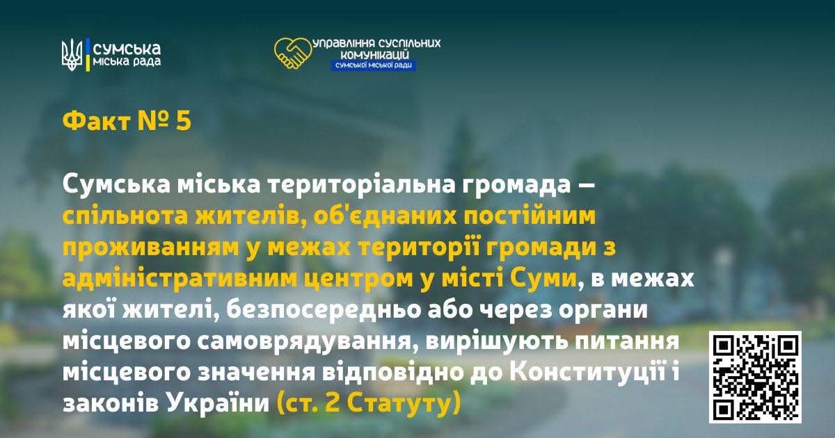 «Ми розповідатимемо про Статут Сумської міської територіальної громади, адже він не лише про сум’ян чи сумчан, а про багато чого важливого для нас усіх. Чому його називають малою Конституцією нашої громади? Як у ньому описані можливості та обов’язки жителів? Які влаштоване врядування у нашій громаді? Чи може громада контролювати владу? Або ж чи може пересічний житель впливати на розвиток сумської громади?» – розповів в. о. начальника управління Андрій МОША.