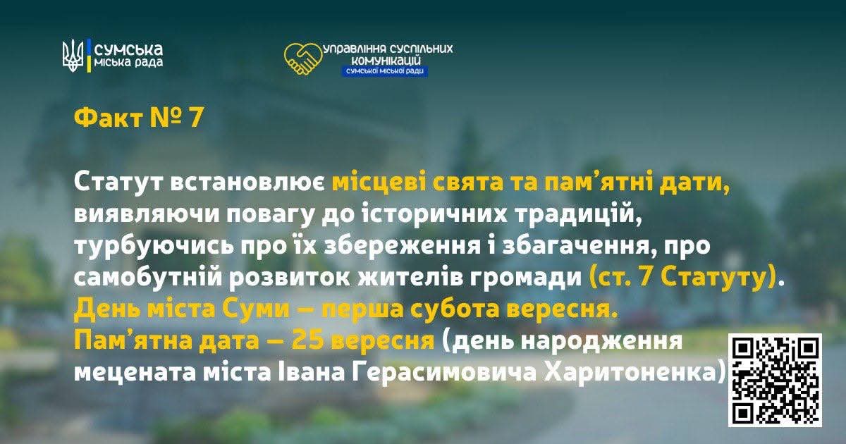 Статут Сумської міської територіальної громади – це 118 статей, 11 розділів та шість додатків. Він був ухвалений 30 жовтня 2024 року міською радою після тривалої процедури актуалізації та приведення до сучасних норм законодавства за участі посадовців, експертів Ради Європи, депутатів і представників громадськості.