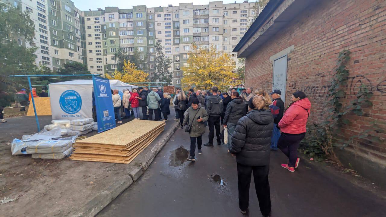 Для виконання першочергових аварійних робіт видані будівельні матеріали від Департаменту інфраструктури міста та ГО «Проліска». Комунальники, волонтери допомагають власникам пошкоджених квартир закривати вікна та балконні конструкції. Організовано також харчування учасників робіт та жителів («World Central Kitchen»).